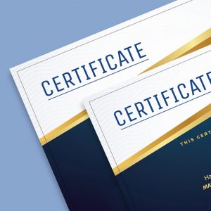 Sertifikat Ukuran Jadi: A4 (21 x 29,7 cm) Kertas: Art Carrton 260 gsmKarton BWKarton Linen Cetak: Warna 1 sisi Order: 2 lembar / pack Jumlah Order/pack: Harga Total (Rp):